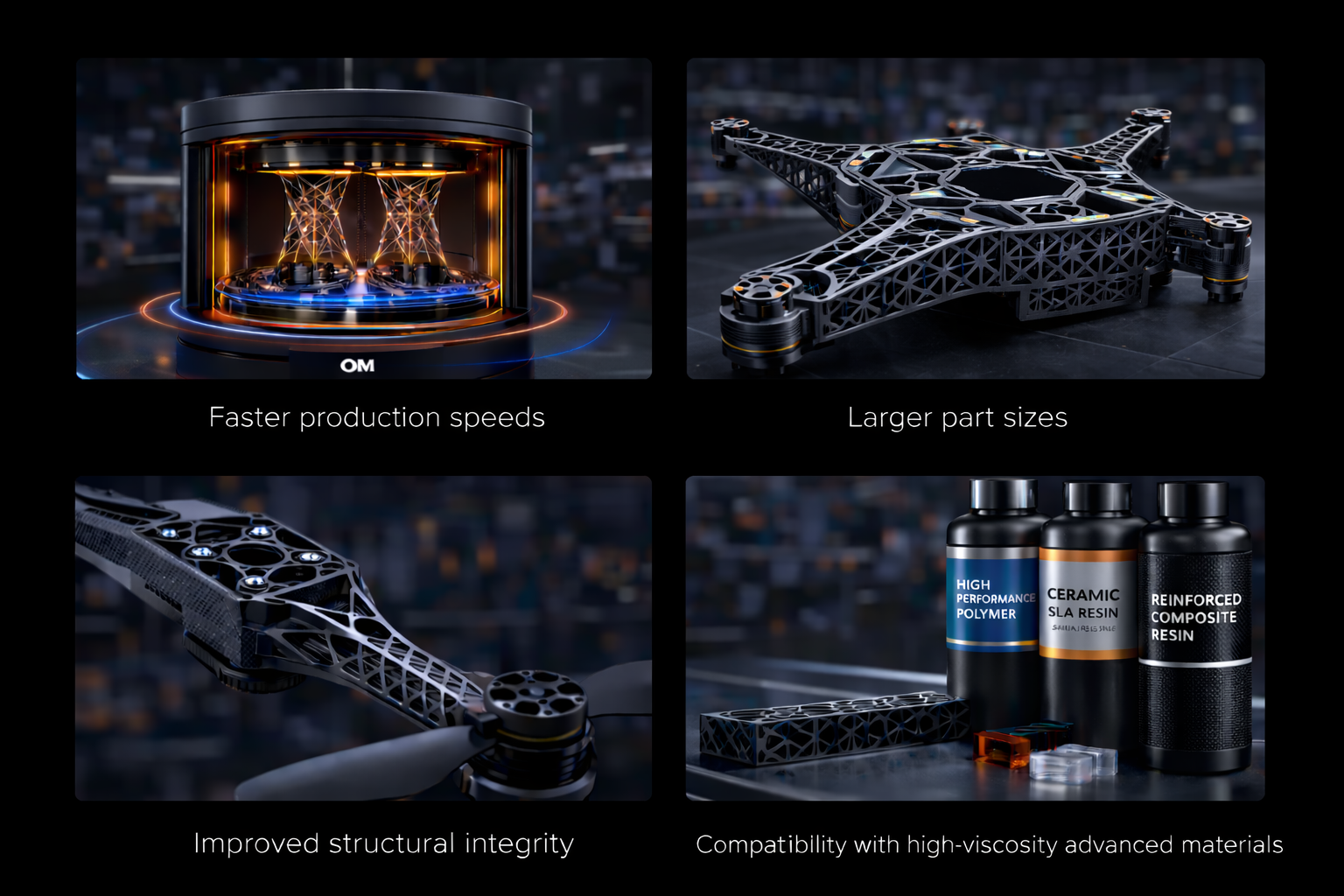 OM technology supports high-performance materials that many additive systems cannot process.